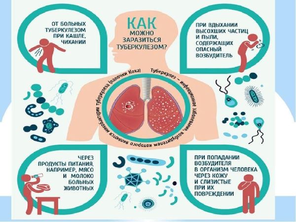 - Основным источником МБТ являются больные люди и животные. Они выделяют их во внешнюю среду, где микроорганизмы могут сразу же поражать здоровых людей или же оседать на различных поверхностях, долго сохраняя жизнеспособность. Среди животных первоочередную опасность представляет крупный рогатый скот, хотя это не означает, что туберкулезом не болеют другие. Возможна передача МБТ от больных свиней, домашних питомцев и птиц любого вида, в том числе курей, попугаев и пр.