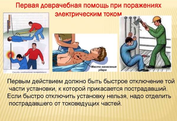 — При поражении электрическим током необходимо как можно быстрее освободить пострадавшего от действия тока, так как от продолжительности его действия на организм зависит тяжесть электротравмы.